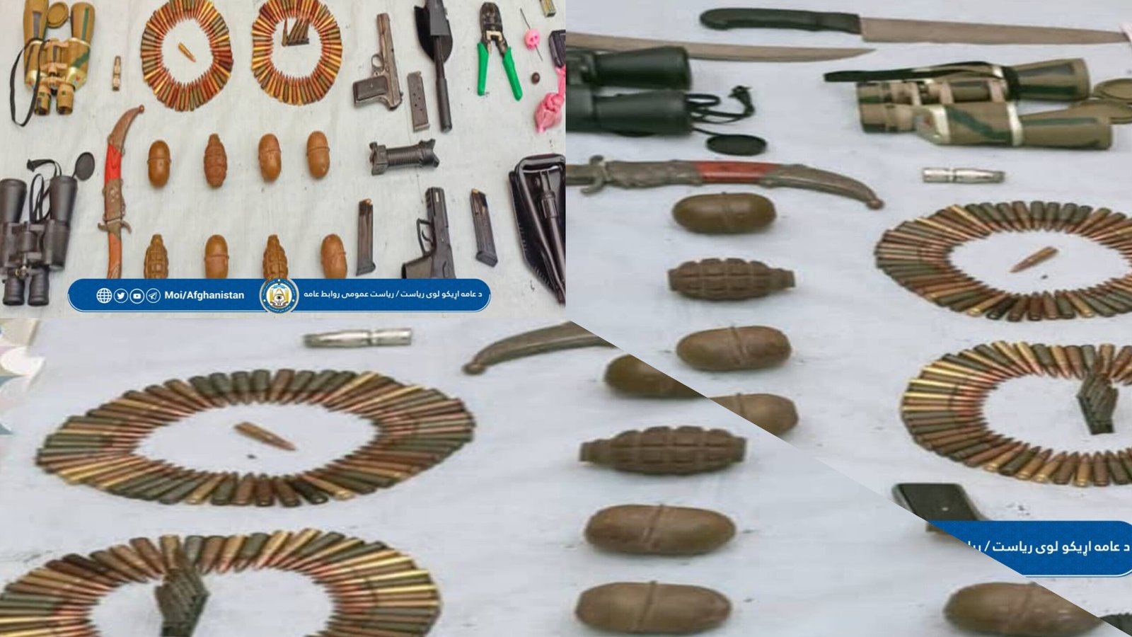 افغانستان نیوز۲۴: منسوبین آمریت مبارزه با تروریزم قوماندانی امنیه خوست در جریان عملیات تلاشی از یک منزل مسکونی در مربوطات ولسوالی اسماعیلخیل و مندوزی، دو میل تفنگچه، هشت حلقه بمب دستی، دو عدد دوربین، ۱۲۲ فیر مرمی کلاشینکوف و شماری دیگر از تجهیزات نظامی غیرقانونی را کشف و بهدست آوردند.