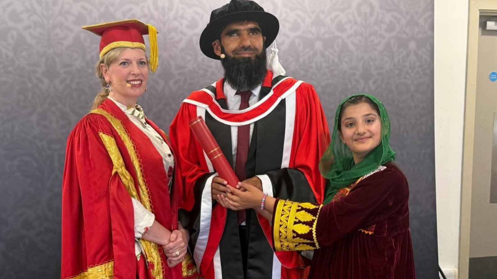 د دوکتورا د ورکړې په ځانګړو مراسمو کې د انګلستان د پاچا ځانګړې استازې، د پوهنتون مشرتابه، او یو شمېر دولتي چارواکو هم ګډون کړی و.