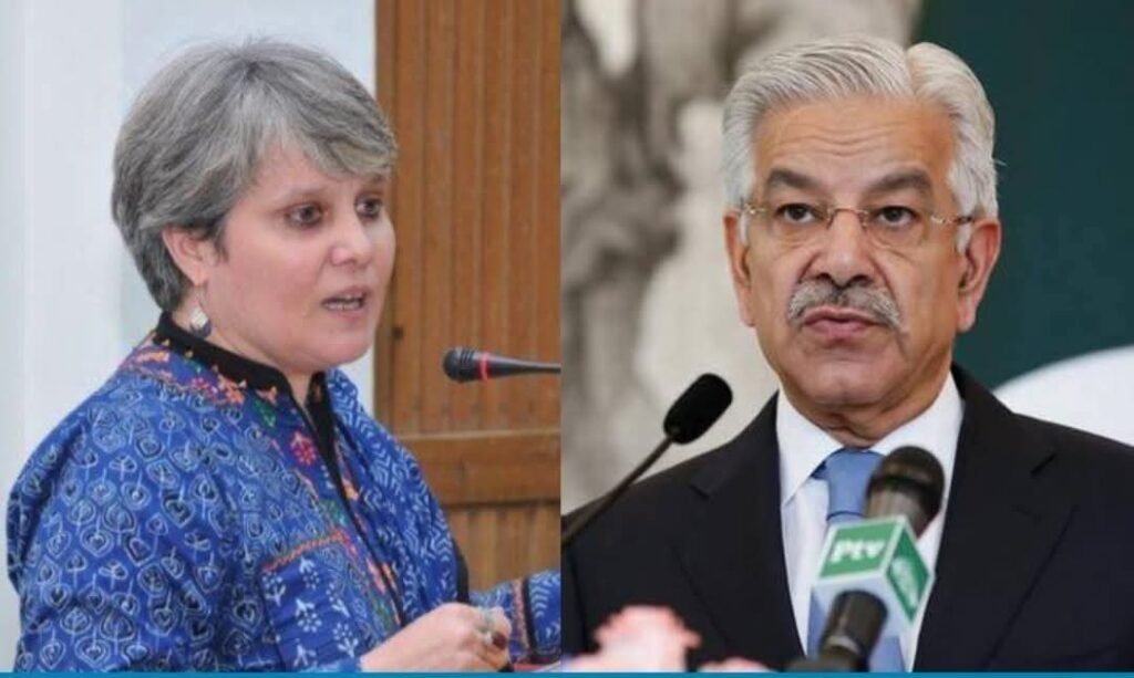 افغانستان نيوز۲۴: د بشري حقونو فعاله او د پاکستان استازو جرګې پخوانۍ غړې بشرا ګوهر د پاکستان د دفاع وزیر خواجه محمد آصف وروستیو څرګندونو ته سخت غبرګون ښودلی او پر هغه یې په ضمني ډول تور پورې کړی چې ګواکي د اسامه بن لادن د پاکستان په خاوره کې د شتون مسؤل دی.